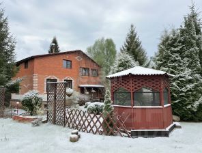 Помимо дома на участке расположены два гостевых домика из бревна,баня из полубруса, беседки, навесы, 2 туалета, хозпостройки, теплица.
