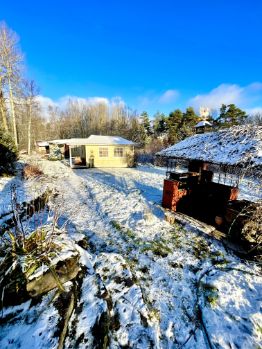 Участок 27 соток с ландшафтным дизайном, сухой, ухоженный и грамотно зонированный: есть баня, которая топится на дровах, летняя комната, мастерская, несколько помещений для хранения садовой утвари и мангальная зона. Летом здесь все утопает в зелени, а вечером можно проводить время у костра в тишине. До озера Вуокса 5 минут пешком.