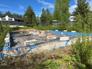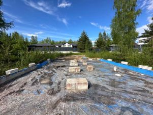 На территории участка уже имеется фундамент под дом, что может значительно упростить процесс строительства.