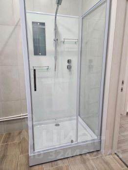 - чистовая отделка с установленной душевой кабиной, унитазом, раковиной и тумбой и кухонным гарнитуром;