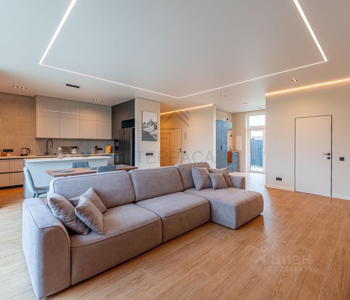 Светлый и воздушный интерьер подарит лёгкость каждому моменту: здесь легко дышится, думается и живётся. Панорамные окна создают ощущение безграничного пространства, а изящная иллюминация по вечерам превращает дом в сказочный уголок. Тёплые полы с первого шага окутывают комфортом, а кондиционер поддерживает идеальный микроклимат в любое время года.