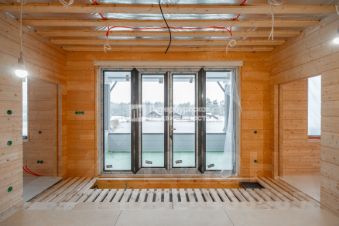 Texнолoгия cтроительства: Материал стен - клееный брус (200 на 230). Фундамент - плита 300 мм. Кровля фиброцементная черепица, утепление потолка за счет обшитой мансарды. На первом этаже расположены: прихожая, холл, котельная, сан. узел, сауна, кладовка, спальня, кухня-столовая, 26 м2, гостиная с камином 37 м2, терраса, крыльцо. На втором этаже расположены: холл, 4 спальни, 4 сан. узла, 3 дополнительные просторные комнаты (детская, гардеробная, кабинет).