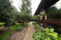 - Высажены голубые ели, можжевельник, азалия, клубника, плодовые деревья вишни, яблони;