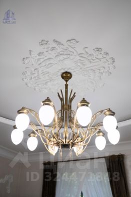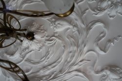- Стены отделаны декоративной штукатуркой с лепниной, обоями из бархата;