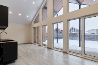 - просторная кухня-гостиная с кухонным гарнитуром и техникой, с выходом на террасу