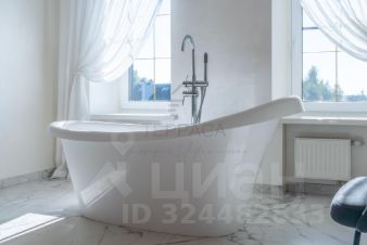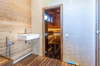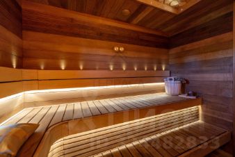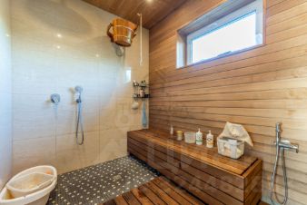 На участке находится двухэтажная баня площадью 120 кв.м., которая включает просторную остекленную террасу, комнату отдыха, бильярдную и гостевую зону, а также санузел.