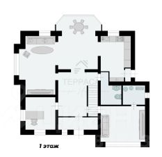 1 этаж - кухня-столовая, гостиная, кабинет, кинозал с профессиональным 4К проектором и экраном, прихожая, холл со вторым светом 8 метров, санузел, котельная.
