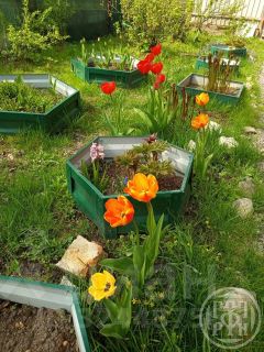 На участке 5,5 соток оборудованы 2 теплицы, есть грядки, растут плодовые деревья, ягодные кусты и красивые клумбы с цветами.