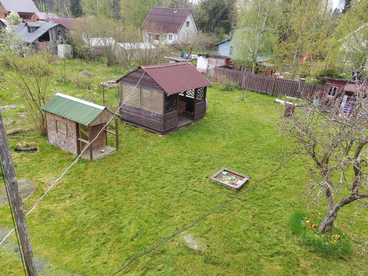 Участок ровный, прямоугольный, сухой, дренаж проложен. Полностью разработан, одна яблоня долгожительница оставлена, остальные посадки молодые- яблоня, смородина, малина, ежевика и ещё много цветов. Новая беседка, домик детский, хоз.постройки, есть фундамент под теплицу. Пару лет назад полностью восстановили холодец. В прошлом году заменены и выведены на столб новые электросчётчики. Электроэнергии нам хватало, но если хозяева запланируют строительство большого дома, то без проблем можно добирать до 15 кВт, так как в садоводстве в прошлом году установлено новое электрооборудование. Межевание проведено, границы четко определены. И кстати сказать, такой дружной улицы, как наша еще поискать надо, с соседями вам точно повезёт!
