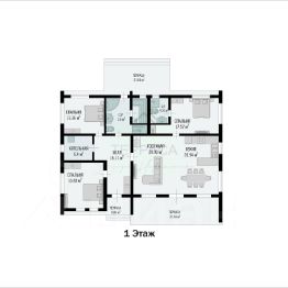 1 этаж - просторная терраса, кухня-гостиная, 3 изолированные комнаты, холл, котельная, душевая, парная, с/у.
