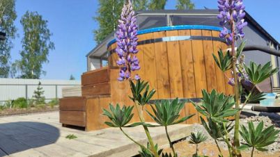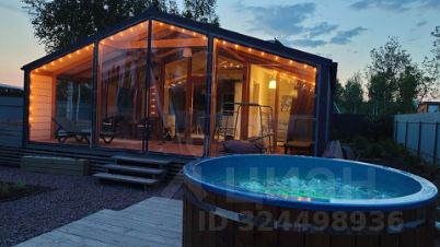 Для полноценного отдыха оборудована баня-бочка, а рядом - купель с подогревом и подсветкой, где можно расслабиться и восстановить силы в любое время года.