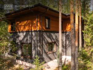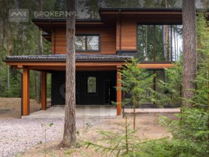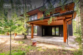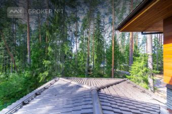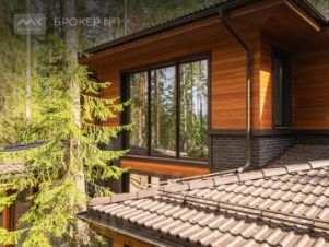Красивый и гармоничный в своем архитектурном решении дом полностью вписан в природный ландшафт хвойного леса. В отделке фасада и крыши использованы качественные премиальные материалы.