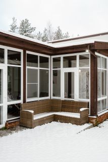 Спроектирована терасса, куда есть выход с кухни и с комнаты и сотвественно с улицы. Терасса остеклена полностью, с местом для отдыха, а так же функцинальные зоны для обеда и отдыха. Дом полностью готов приезду новых хозяев, вся мебель и техника передаваемая - обсуждается индивидуально.