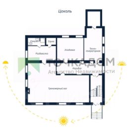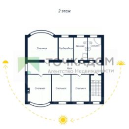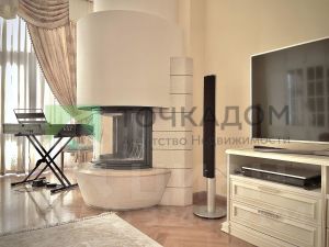 На трёх этажах расположены: общее пространство с каминным залом, кабинет, 5 спален, тренажерный зал с сауной, 4 санузла, хозяйственные комнаты, гардеробная.