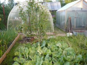 Участок у дома ухожен, разработанный, (был произведён дренаж). Участок разделен на функциональные зоны - зона для отдыха, сада и огорода (две теплицы), а также зону парковки для автомобиля.