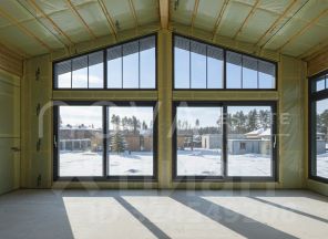 Архитектура дома сочетает лаконичность скандинавского дизайна с выразительной геометрией пространства. Второй свет, потолки высотой от 3,5 до 8 метров, панорамные окна по всему периметру, свободная планировка формата Open Space создают ощущение объёма, света и воздуха. Это дом, который подстраивается под вас — здесь можно реализовать любое зонирование и сценарии жизни.