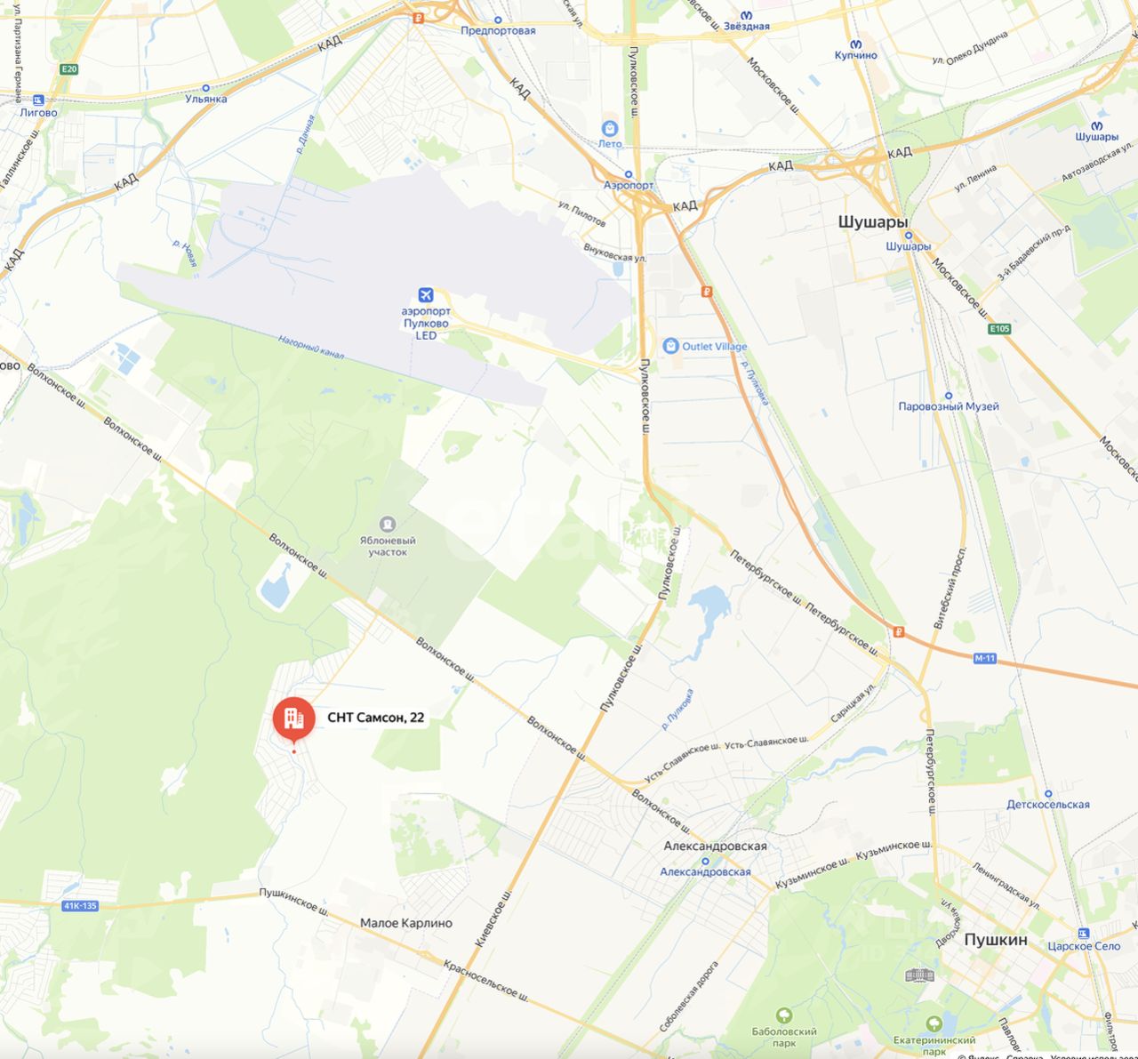 - Ленинградская область, Ломоносовский муниципальный район, Виллозское сельское поселение, СНТ "Самсон", участок 22.