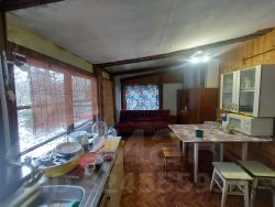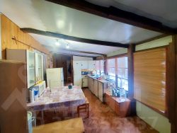 Дом бревенчатый (веранда каркасно-щитовая утеплённая); снаружи обшит доской и покрашен; фундамент ж/б блочный, крыша шифер. В доме на первом этаже: открытая терраса; прихожая; большая осветленная кухня/веранда 21 кв.м. с установленной кухонной мебелью; холл с лестницей на второй этаж; спальня с кирпичной печью плитой и щитом отопления 12 кв.м.; гостиная с камином три окна 16 кв.м.; спальня 6 кв.м.; с холла выход в баню (комната отдыха + парилка с установленным душем). На втором этаже: холл 12 кв.м. и летняя спальня 12 кв.м. Дом продается с мебелью и техникой. Отделка стен деревянные/обои, полы крепкие деревянные/крашенные, рамы деревянные двойные.