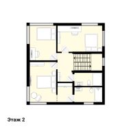 4 спальни, 3 санузла (есть отдельный санузел в мастер спальне 7 м2), 2 гардеробные по 5 м2 на каждом этаже, кладовая, котельная, которую можно совместить с прачечной ( более 7 м2).