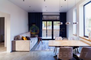 Главное пространство гостиная с выходом на просторную террасу, где удобно проводить время всей семьёй и встречать гостей.
