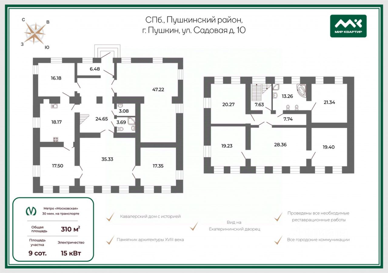 Уникальное предложение! Владейте частью российской истории. Великолепно отреставрированный Кавалерский дом — памятник архитектуры XVIII века в самом сердце Пушкина!