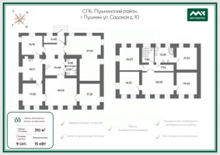 Простор и свет: Высота потолков от 3,2 до 3,7 метра создает ощущение простора и величия. Площадь особняка — 310 кв.м.