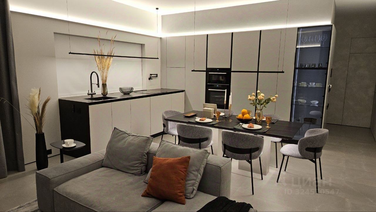 Кухня — это мечта: панорамное окно, кварцевая столешница шириной 1 м, встроенная техника и скрытая вытяжка. Всё продумано до мелочей, чтобы было удобно и красиво.