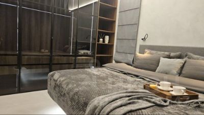 Мебель выполнена из качественных материалов Egger, крашенные МДФ-фасады с фрезерованными ручками, с фурнитурой Blum (пр-во Германия), диван Boca Navi, авторский умный стол из слэба карагача с подсветкой, парящая кровать - многие решения вы не увидите нигде кроме нашего дома... Интерьер вживую смотрится еще более впечатляюще, чем на фото.