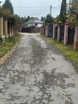 Участок расположен в конце улицы до которой ведёт ровная отсыпанная асфальтной крошкой дорога (дома на улице расположены в один ряд) .