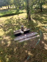 Участок огорожен рабицей. Тихое спокойное место, удобный выезд на Киевское шоссе, в пешей доступности озеро, где можно купаться.