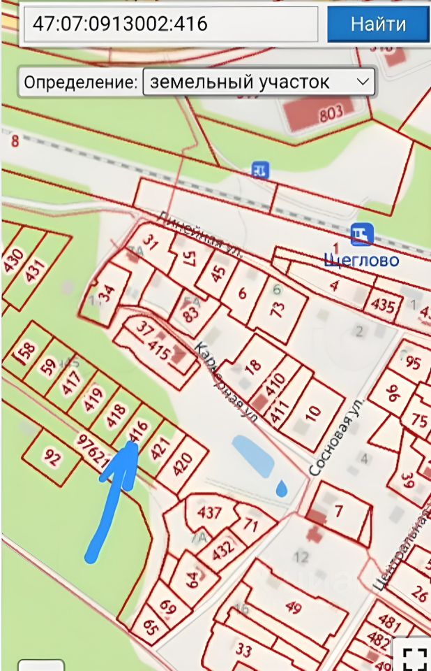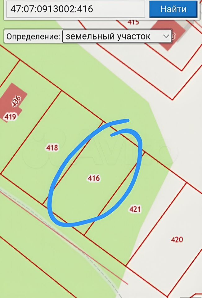 Ижс земельный участок, документы готовы, рядом есть столб свет, газ на улице уже подвели. Покажу в любое время. Станция Щеглово в пяти минутах ходьбы. Кадастровый номер участка 47:07:0913002:416.