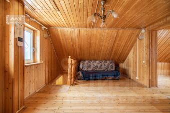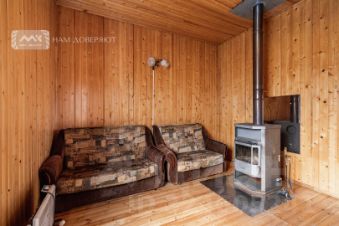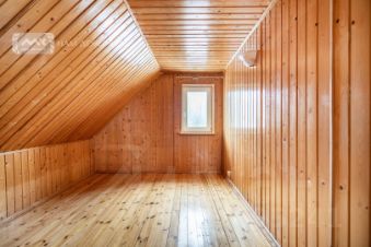 На участке расположен бревенчатый домик 106 м² — его можно использовать как дачу или снести, освободив место для нового современного коттеджа. Подъезд — асфальтированный, электричество 15 кВт заведено, вода из колодца, газ — по границе участка.