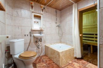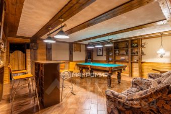 Гардеробная комната. Сауна - стены и лежаки из Абаша. Бильярдная - стены обтянуты льняной тканью французской фирмы Houles, отделка деревом под заказ, бильярдный стол 7 футов - мраморная плита. Санузел. Котельная-постирочная. Котёл немецкий газовый двухконтурный Budweiser Logan G234. Есть резервный электрический котёл.