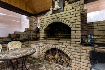 Территория вокруг дома обустроена и заботливо облагорожена прекрасными деревьями и растениями и вымощена. Большая закрытая беседка, мангальная, детская игровая зона, бассейн.