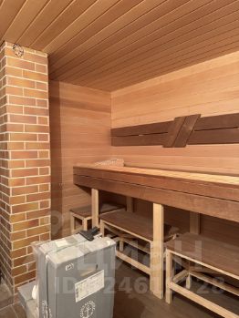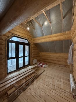 Второе здание на участке - просторная двухэтажная баня. Баня соединила в себе стиль Шале и необходимые для современной жизни удобства. Здесь расположились две отдельные спальни, одна из которых имеет балкон с видом на озеро. А также банная зона с душем и санузлом.