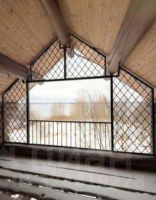 На участке по факту около 1 гектара, расположился большой дом с продуманной планировкой. Большая кухня гостиная занимает самое большое помещение в доме на первом этаже, также на первом этаже расположились зона прихожей с гардеробной, гостевой санузел и котельная. В центральной части дома спроектирована лестница на второй этаж, застекленный эркер с потрясающим видом и вторым светом, освещающим со стороны озера большую часть дома. На втором этаже расположились две мастер-спальни, каждая со своей небольшой прихожей, санузлом и балконом.