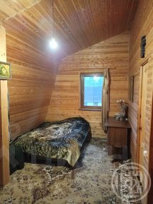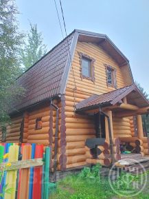 Дом построен из оцилиндрованного бревна диаметром 28-30 см из сосны зимней рубки. Первый этаж выполнен из бревна, второй каркасный. Размеры дома 6х9 метров, общая площадь 96,8 кв. м. Вода поступает из скважины глубиной 148 метров и является питьевой. Есть электричество (оплата по счетчику СНТ), газ (баллон для плиты) и канализация (биостанция).