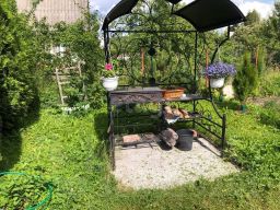 * Участок полностью огорожен сеткой рабицей, на территории расположены сарай с хозяйственным инвентарем, включая газонокосилку и запас дров, а также новый дачный туалет.