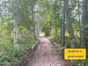 На участке растут: клен, ели, сосны. Дорога к участку — асфальтовая крошка. Соседи дружелюбные и воспитанные, живут постоянно.