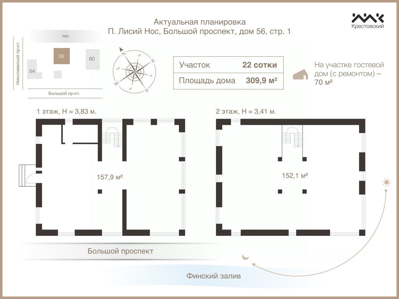 Арт. 75079767 Предлагается к продаже новый дом общей площадью 309 м2, в одной из самых престижных и удобных локаций Выборгского района - в поселке Лисий Нос. Участок размером 22 сотки имеет правильную форму и выровненную территорию.