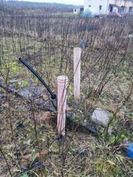 На участке девелопер не успел достроить восемь 2х этажных таунхаусов. Залит под них ленточный фудамент (40см шириной), заложена канализация, вода.