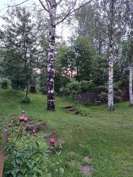 Участок 13 соток, часть разработана для грядок, 2 парника, кусты смородины, крыжовник, сад яблони, груши, сливы, вишня, виноград. Часть участка густой газон для активного отдыха, бассейн.
