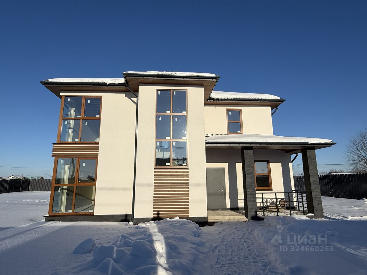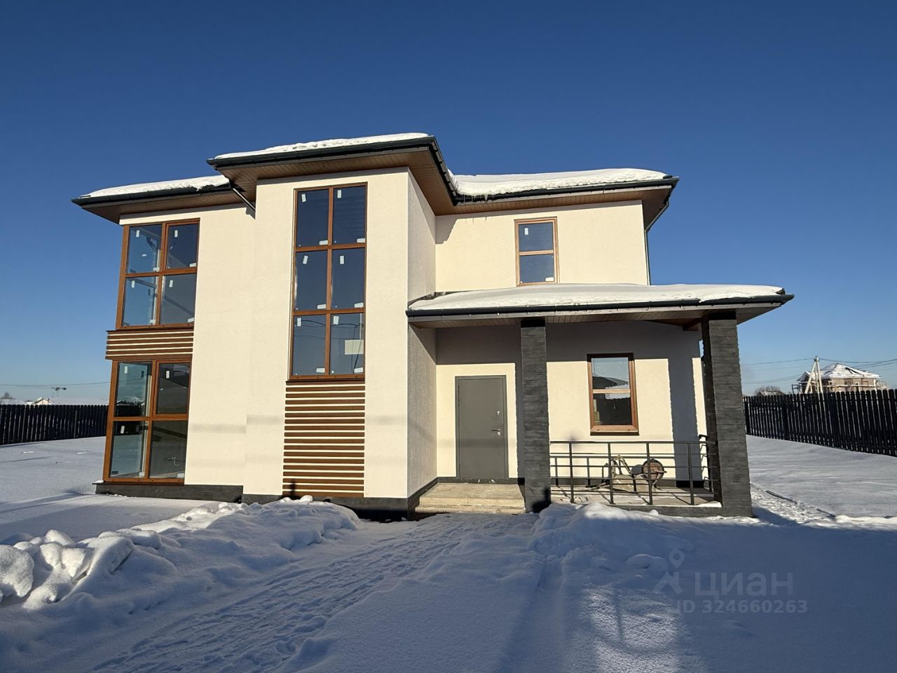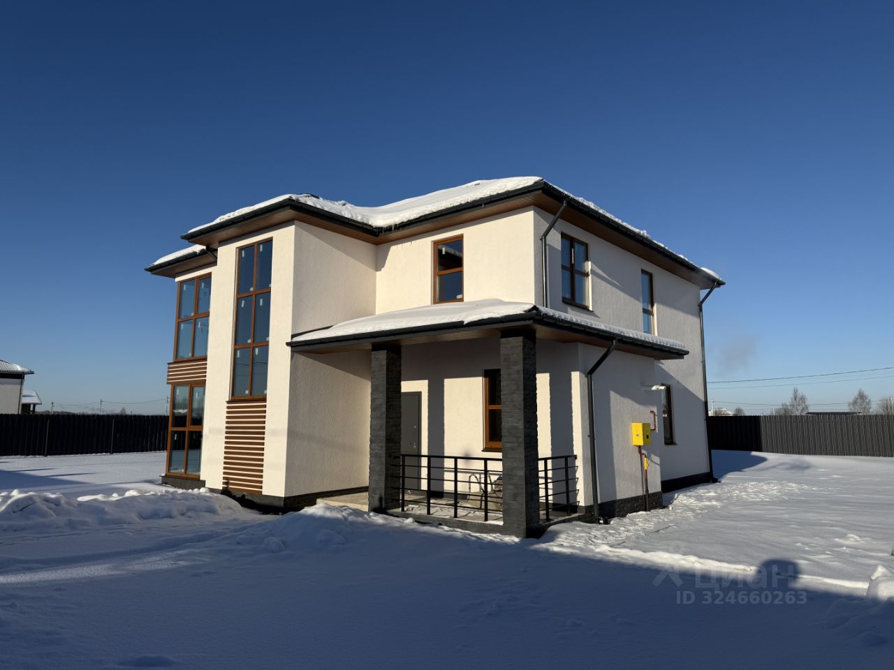 5. Фасад отделан декоративной штукатуркой и камнем.