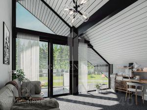1 этаж : панорамная кухня-гостиная, гостевая спальня, санузел, котельная, терраса.