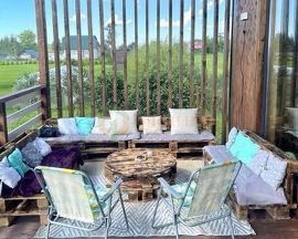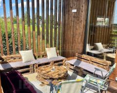 Открытая терраса находится на высоте 1,5м от уровня земли, создает эффект "Барнхауса на склоне" и придает особый антураж, открывая перед собой живописные виды, где мир без границ, чувство свободы и самые красочные закаты. Терраса является центром жизни в Барнхаусе - это место для уединения и вдохновения, занятий творчеством и семейных посиделок - здесь рождаются воспоминания и открываются новые горизонты.
