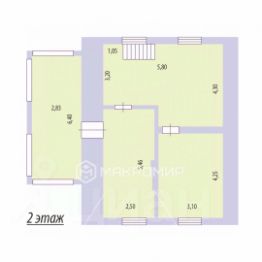 На первом этаже веранда 18 м2, холл 17 м2, кухня 15 м2, санузел с душевой кабиной 2 м2, две спальни 17 м2 и 12 м2