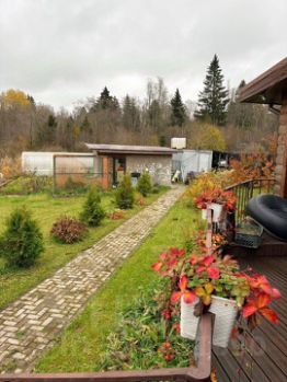 Во дворе установлена уличная купель с джакузи, подсветкой и дровяным подогревом воды. Рубленная деревянная беседка, кованный мангал. Часть участка - плодовый сад (яблони, сливы, смородина, земляника, малина), есть хвойные крупномеры и альпийские горки. Коллекция английский роз и пионов, гортензии.