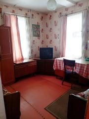 Дом бревенчатый. 2 рабочие печки. По дому сделана рабочая разводка батарей (раньше было паровое отопление). В доме 4 комнаты (три на 1 этаже и одна на втором), кухня, веранда. Туалет на улице. Свет 15кВт. Газ по участку. Вода рядом общий колодец.