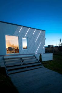 2 участка рядом пустуют - вокруг зелень и тишина, на участке паркоместо на 2 машины, мангал и камера на въезде. У дома оригинальная уличная подсветка.