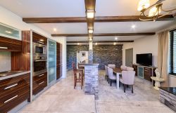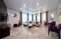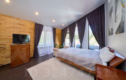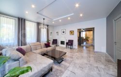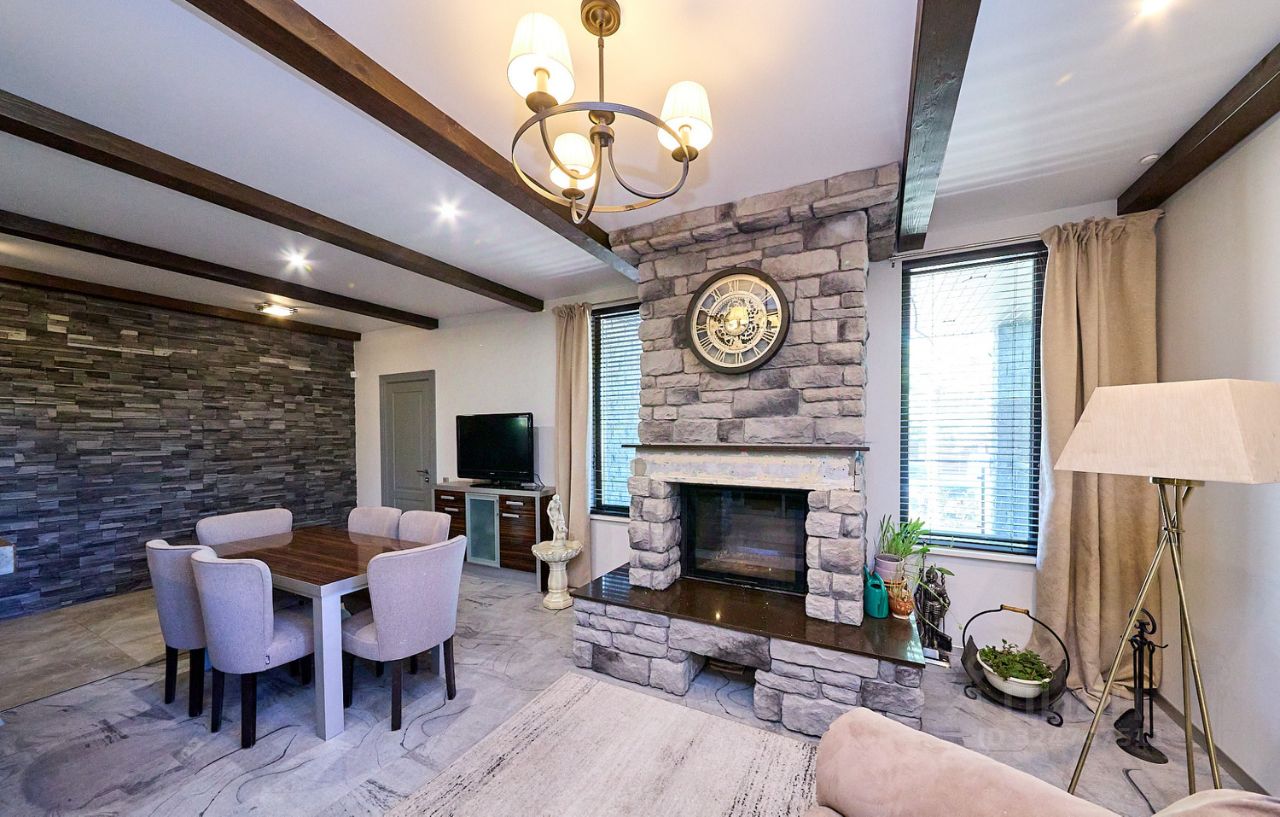 Дом два этажа, фундамент и перекрытия монолитные, стены монолит не съемная опалубка, мягкая кровля. Общая площадь коттеджа составляет 286 квадратных метров, из которых 75 квадратных метров приходится на террасы и балконы. В доме 5 комнат, три санузла, террасы и балконы. Современное оборудование и дизайнерский ремонт.